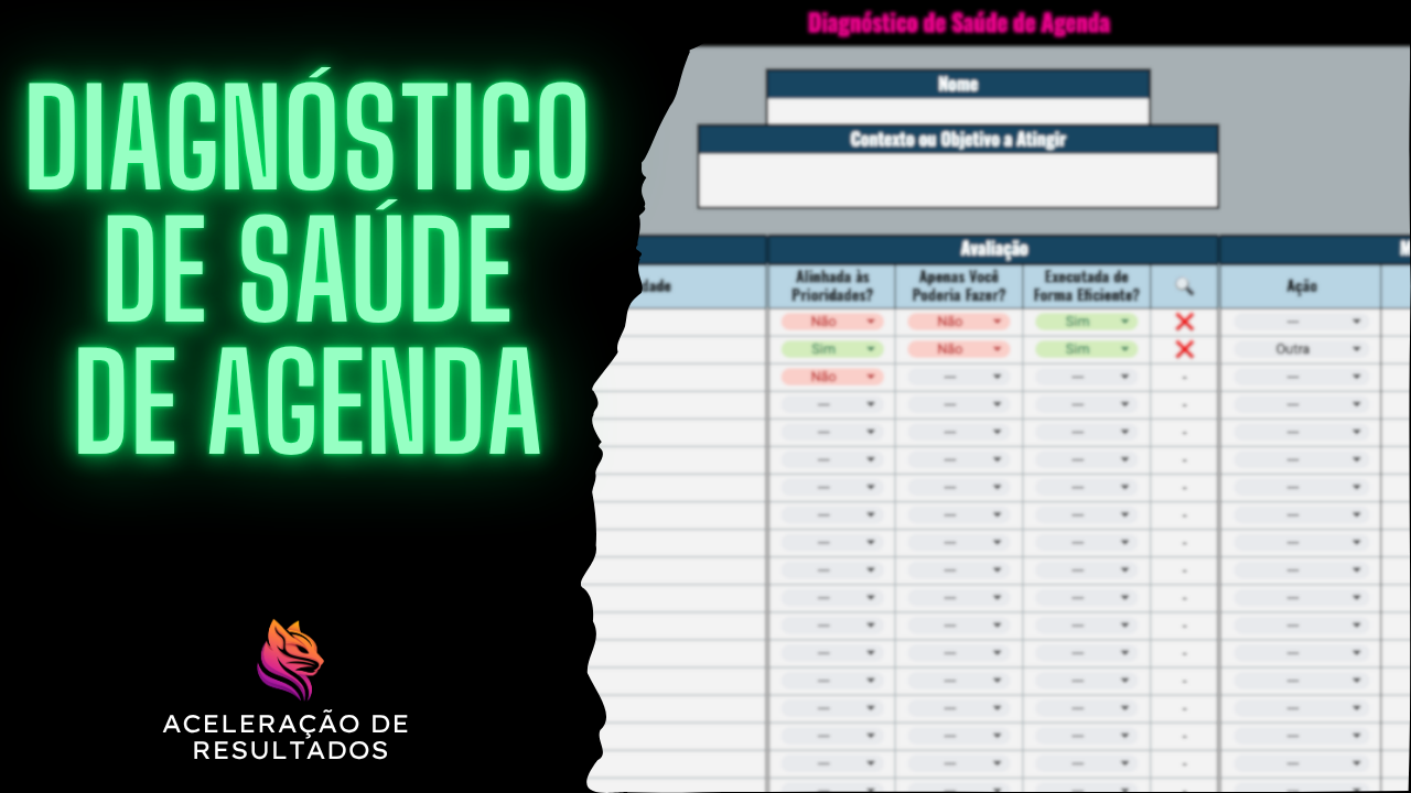 Acesse gratuitamente nosso Diagnóstico de Saúde de Agenda e tenha mais controle e previsibilidade de forma rápida no seu dia a dia de liderança e gestão.